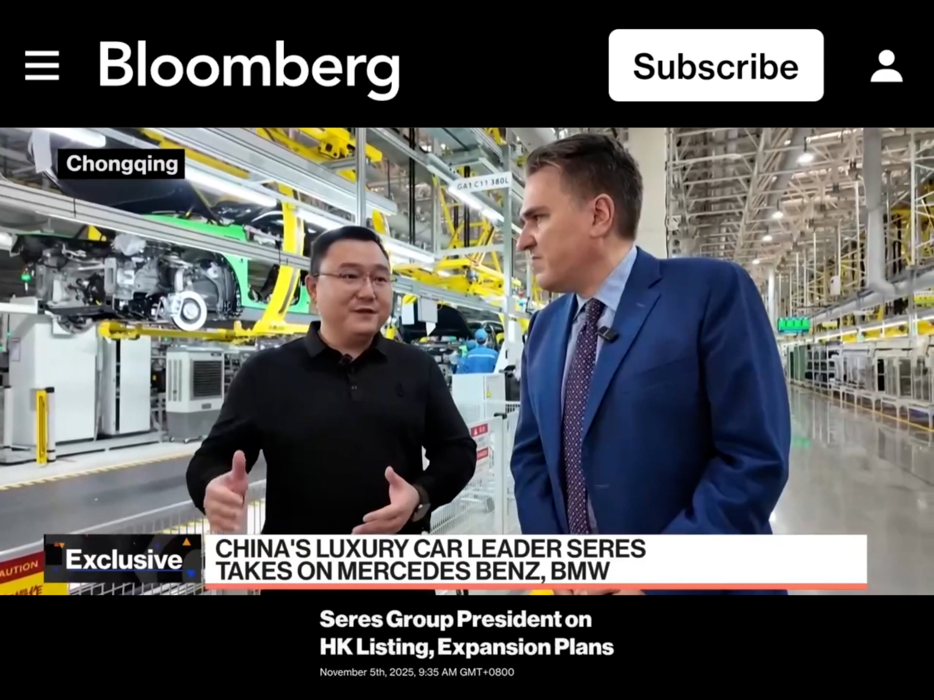 SERES Group President Zhang Zhengping Featured in Exclusive Bloomberg Interview